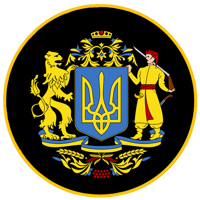 Au centre, nous retrouvons les armoiries constitué du Tryzub