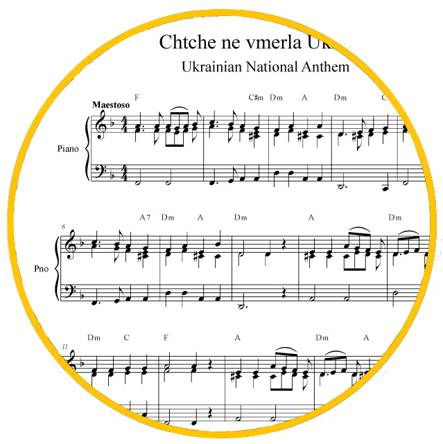 L’hymne national de l’Ukraine, intitulé « Shche ne vmerla Ukrainy »
