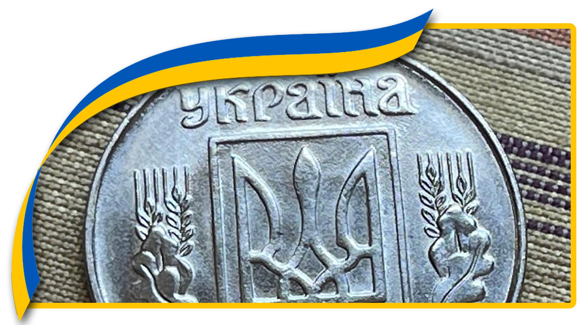 L’ensemble est surmonté de la couronne de Volodymyr le Grand, symbole de la souveraineté Ukrainienne.